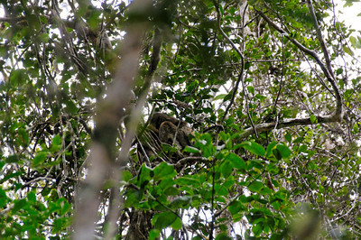 Along the tour we also meet some smaller animals, a very small frog (1 cm) , a small gecko that hides in a plant, a wild bees nest, and several bird species among which the king of the jungle with its strange hairdo. We arrive back at the hotel, where we have an early lunch at 12:00. After lunch and a quick siesta we take a quiet reading afternoon, while Maxim and our guide take another trip to the lemur island. By this time it rains and pours. When Maxim comes back soaked at around 16:00, he comes with stories of the ring-tailed lemurs they visited on another island, and that he also has been able to feed some pieces of banana. The four of us drink coffee and hot chocolate. Maxim then goes for a hot shower. After some more quiet reading, a good meal in the restaurant completes the day. We go to bed early again to be fresh tomorrow, packed to leave at 8:00.