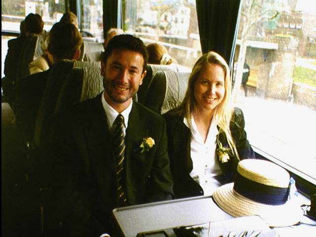 From the church, the trip went by bus (See pictures of Thomas and Sabine, Simon and Suzanne, Tony and Evelyne, Doros and Fiona, Anne's parents, Peter and Marion) to the boats.