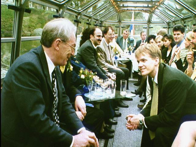 It was decided to rent a boat that could handle up to 30 people. But: one day before the event the company called, and told us that the actual maximum on a trip with catering was 25.... And even worse: at last count, we would be 31 on the trip.... So the company decided at that last moment that we would need 2 boats, and the whole organization was arranged.