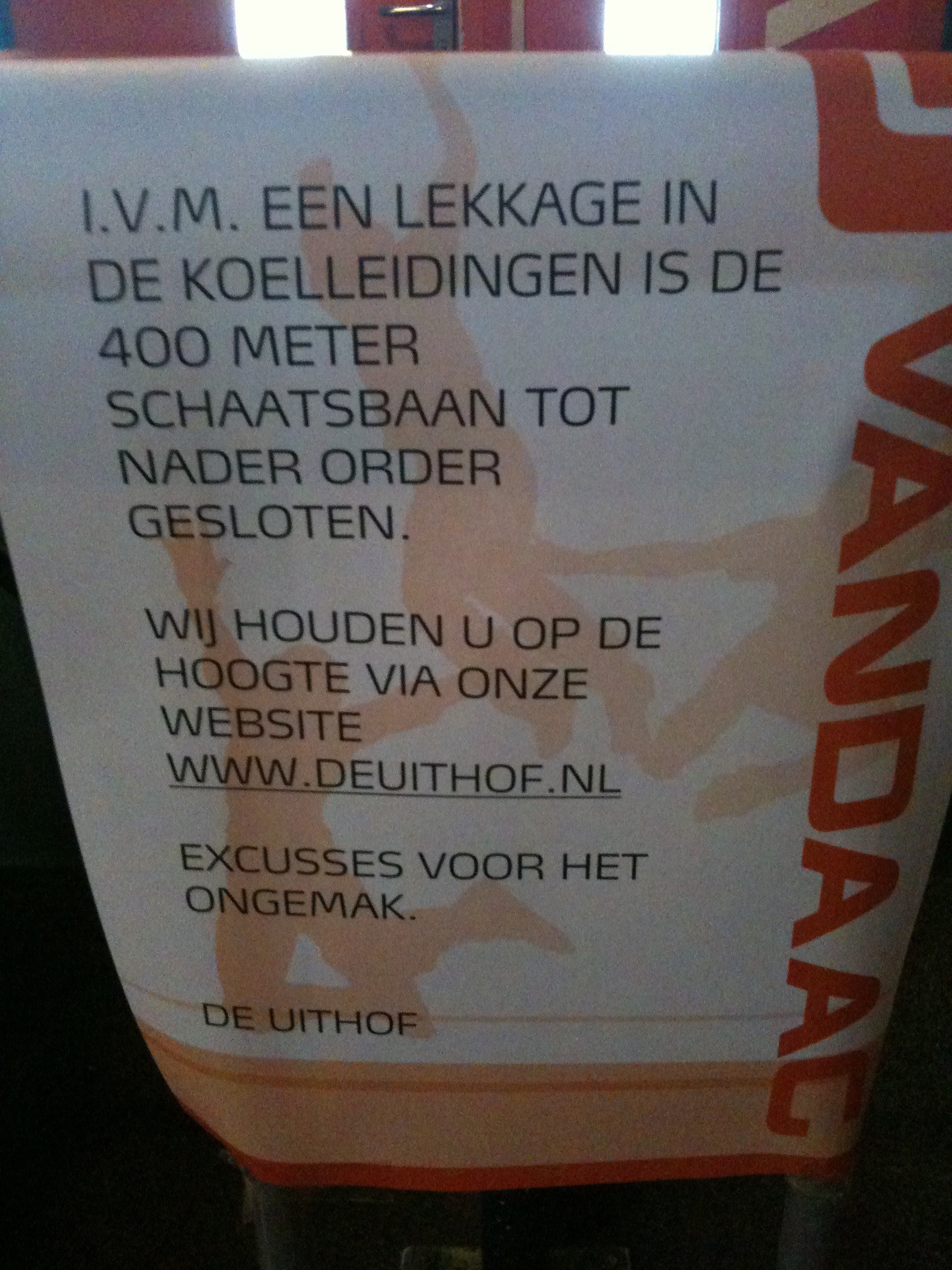 De uithof scate rink. Cooling system failed…. Many people came in vain. Even outside of the sealed doors the smell of ammonia is quite strong. Luckily we came for the ski slope. #oops #nh3