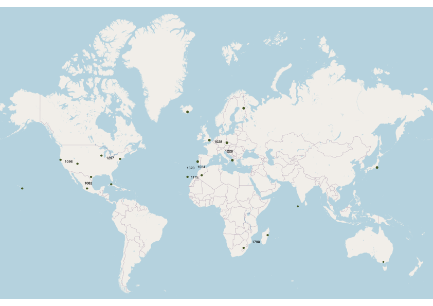 I realized that over the course of the years I have been visiting several quite different areas of the globe. This made me decide to make a special cross section of the pictures that I have taken over the years: a set with as special property that any pair of pictures selected from the set are always taken at more than 1000 km distance from each other. The result: 21 pictures, representing 21 completely separate circles of 500 km radius, about 3% of the earth's surface. I still have a long way to go!